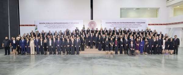 Durante la sesión pública, extraordinaria y solemne del Congreso del Estado, en el Polyforum de esta capital, y luego de la toma de protesta de las y los 147 magistrados y magistradas y juezas y jueces, a cargo del presidente de la Junta de Gobierno, diputado Humberto Prieto Herrera, el gobernador destacó que este acto deja para la posteridad y una imagen inédita, con la concurrencia del pleno de los 3 Poderes del Estado,